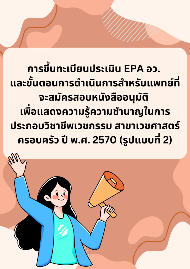 การขึ้นทะเบียนประเมิน EPA อว. และขั้นตอนการดำเนินการสำหรับแพทย์ที่จะสมัครสอบหนังสืออนุมัติ เพื่อแสดงความรู้ความชำนาญในการประกอบวิชาชีพเวชกรรม สาขาเวชศาสตร์ครอบครัว ปี พ.ศ. 2570 (รูปแบบที่ 2)