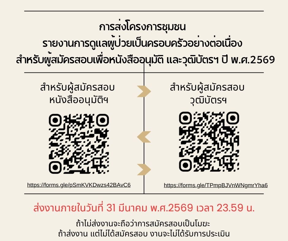 การส่งโครงการชุมชน รายงานการดูแลผู้ป่วยเป็นครอบครัวอย่างต่อเนื่อง สำหรับผู้สมัครสอบเพื่อหนังสืออนุมัติ และวุฒิบัตรฯ ปี พ.ศ.2569