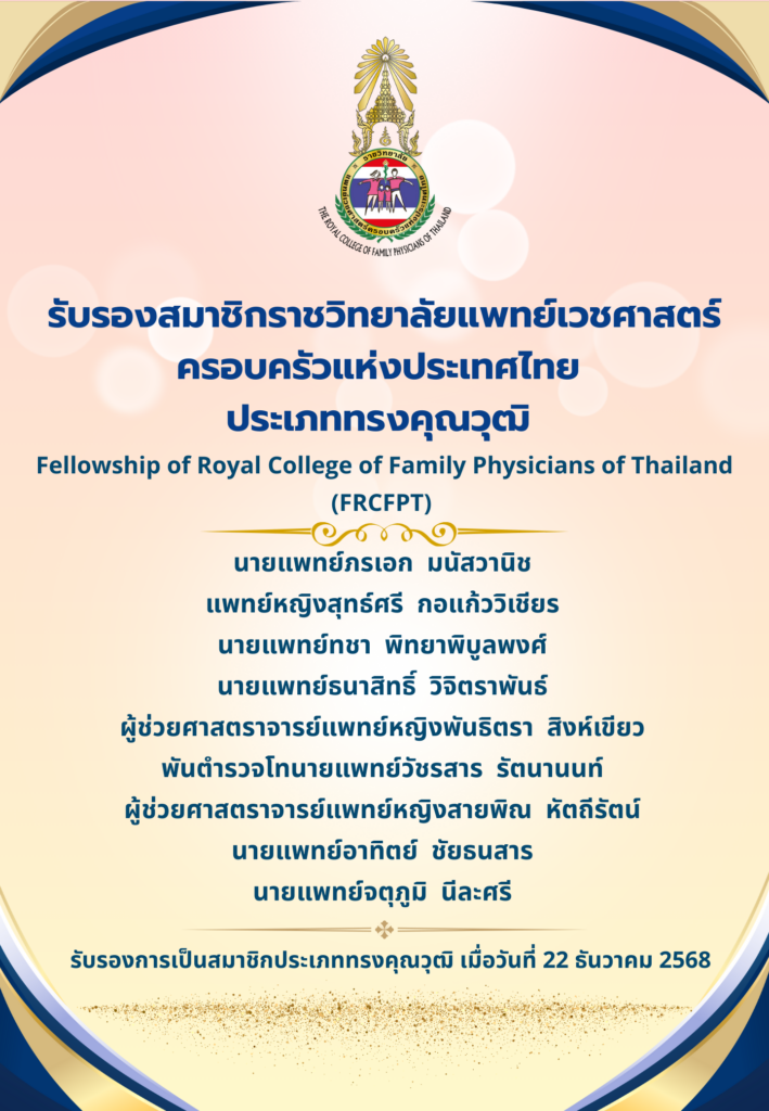 ประกาศรับรองสมาชิกราชวิทยาลัยแพทย์เวชศาสตร์ครอบครัวแห่งประเทศไทย ประเภททรงคุณวุฒิ