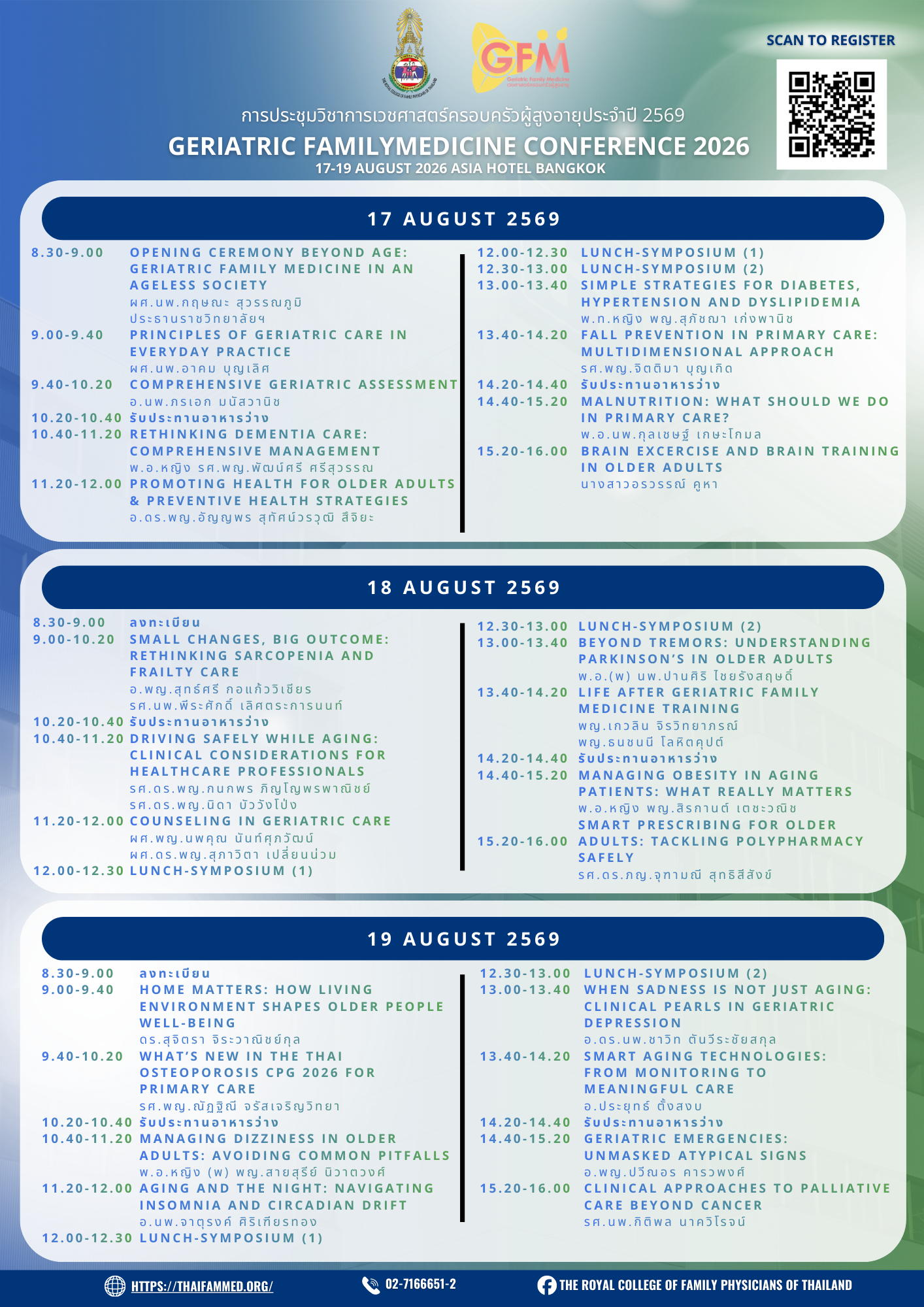 การประชุมวิชาการเวชศาสตร์ครอบครัวผู้สูงอายุประจำปี 2569 (17-19 สิงหาคม 2569)