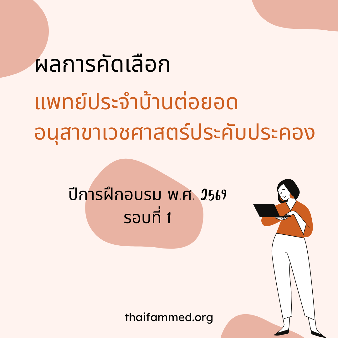 ประกาศผลการคัดเลือกแพทย์ประจําบ้าน สาขาเวชศาสตร์ครอบครัว ประจําปีการฝึกอบรม 2569 รอบที่ 1