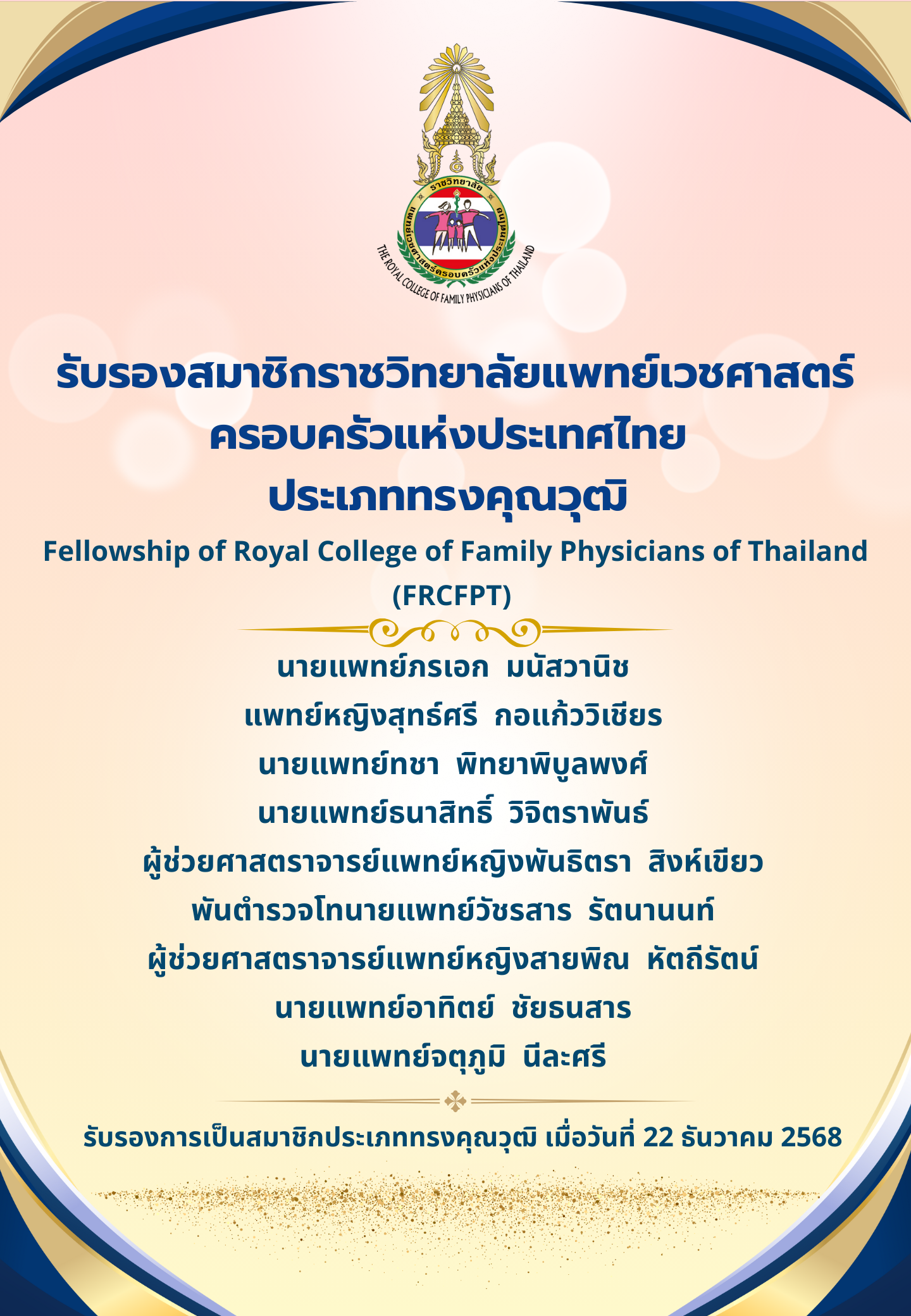 ประกาศรับรองสมาชิกราชวิทยาลัยแพทย์เวชศาสตร์ครอบครัวแห่งประเทศไทย ประเภททรงคุณวุฒิ